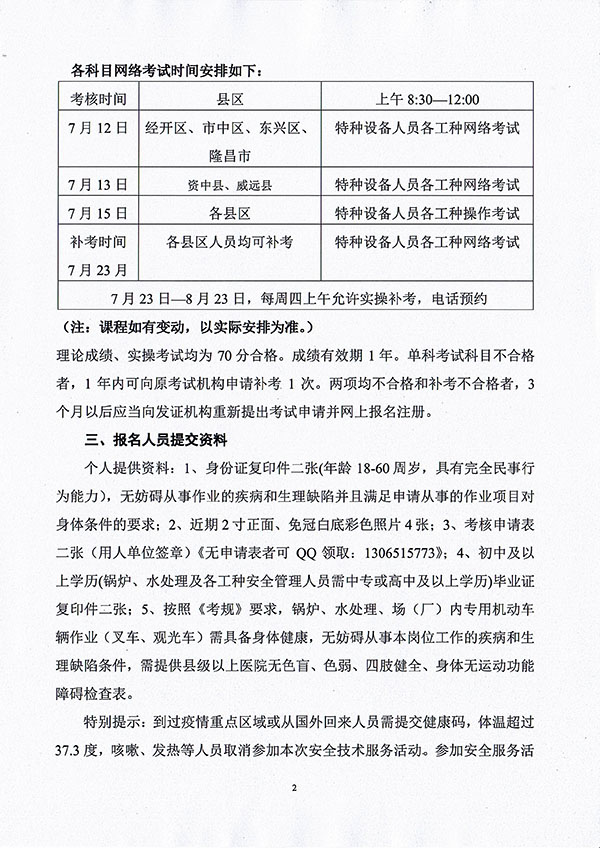 2021年春生公司05期特種設(shè)備作業(yè)人員考核時間安排