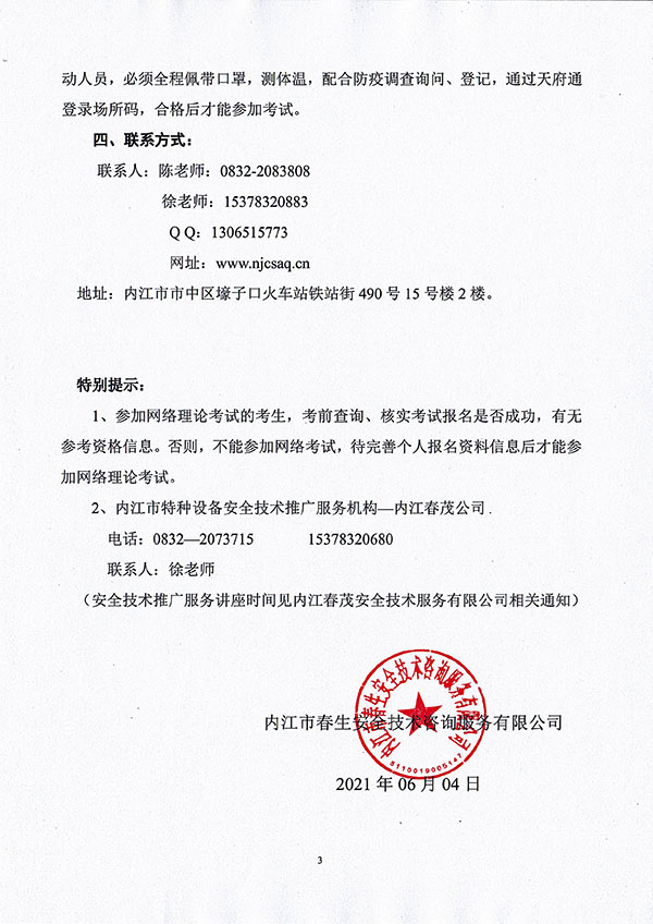 2021年春生公司04期特種設(shè)備作業(yè)人員考核時間安排