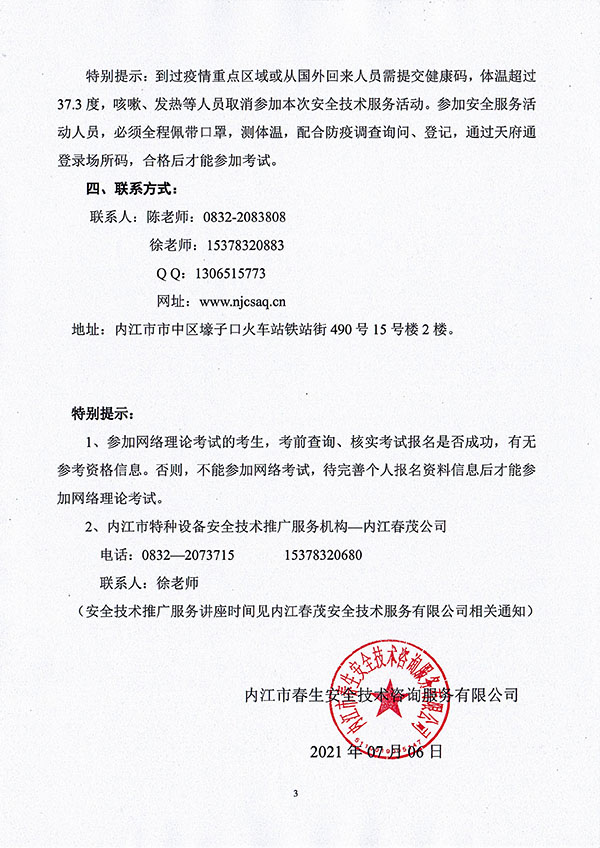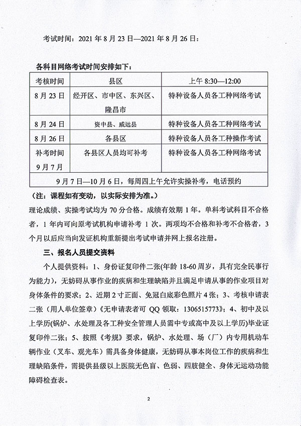 2021年春生公司06期特種設(shè)備作業(yè)人員考核時(shí)間安排