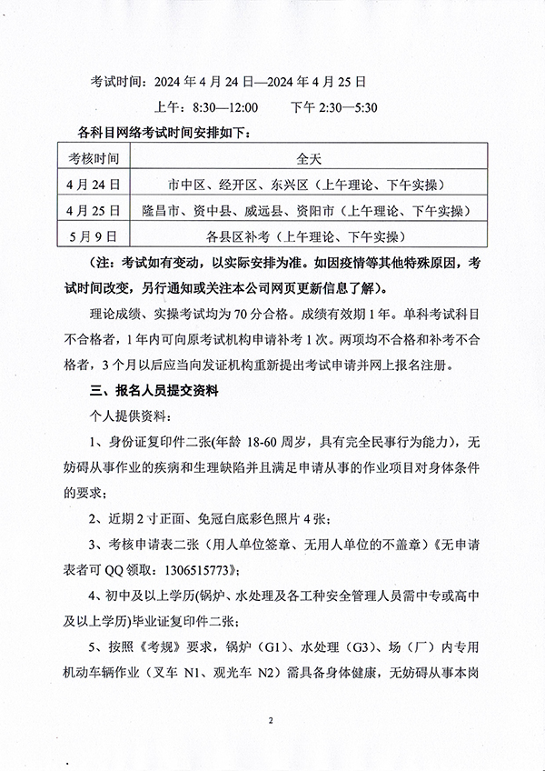關(guān)于舉辦內(nèi)江市、資陽市(2024)02期特種設(shè)備作業(yè)人員考核班的通