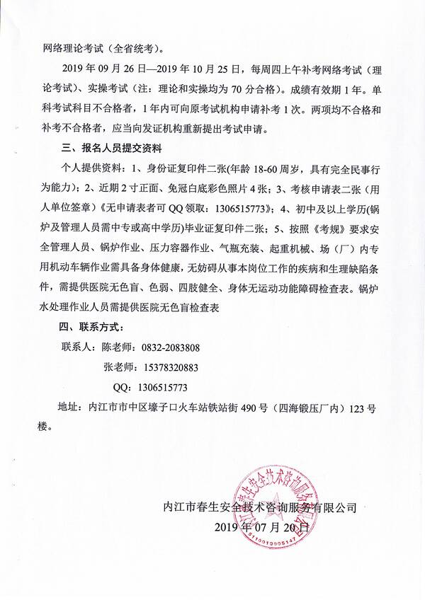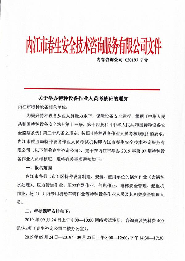 2019年第七期特種設(shè)備作業(yè)人員考核培訓(xùn)班的通知