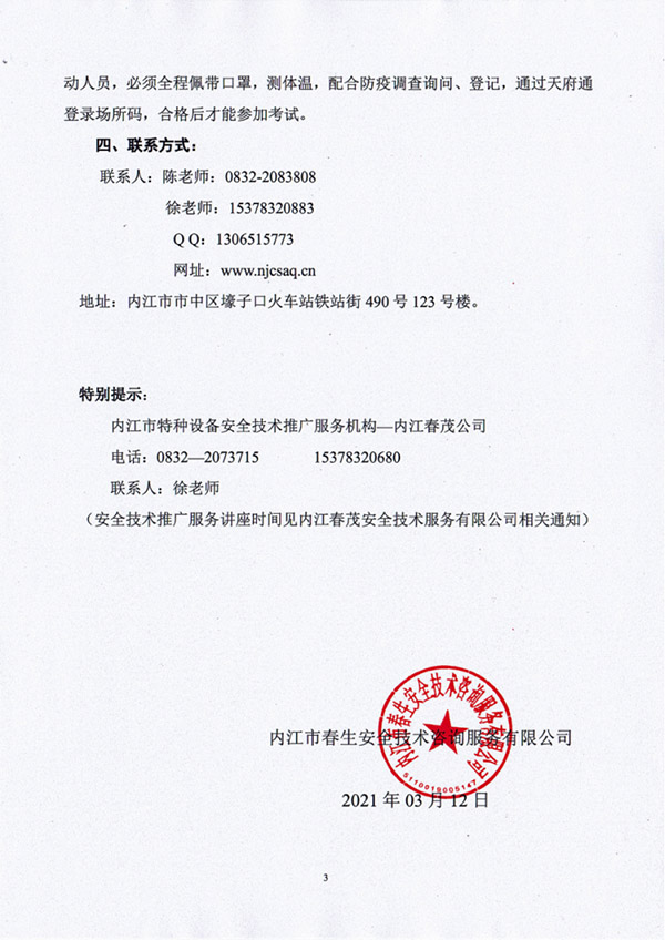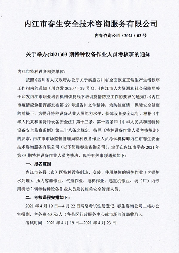 2021年春生公司03期特種設(shè)備作業(yè)人員考核班通知