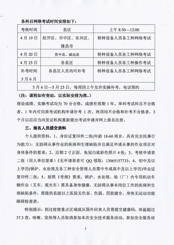 2021年春生公司03期特種設(shè)備作業(yè)人員考核時(shí)間安排